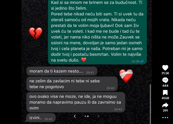 “Najljepše dane proveo sam sa tobom,a kako na rastanku da ti kažem zbogom”, stoji u opisu kratkog videa u kom su pokazane poruke raskida.